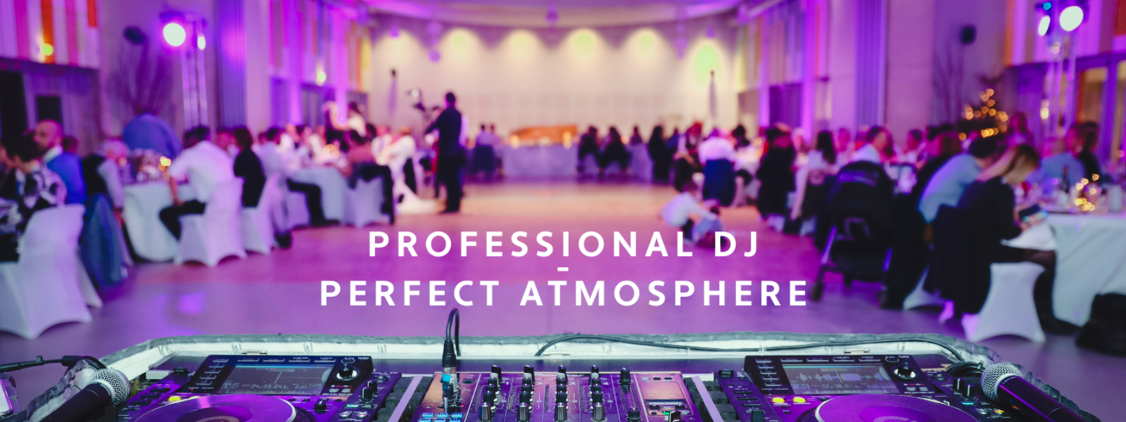 My stylish DJ booth, premium sound system, intelligent lighting, and optional video projections create a modern, sophisticated atmosphere that complements your décor and elevates the entire experience.